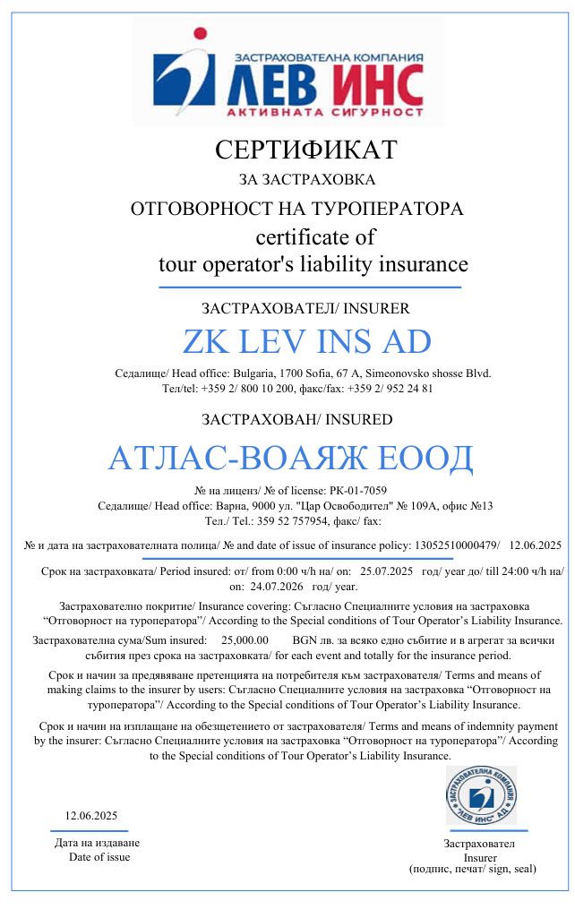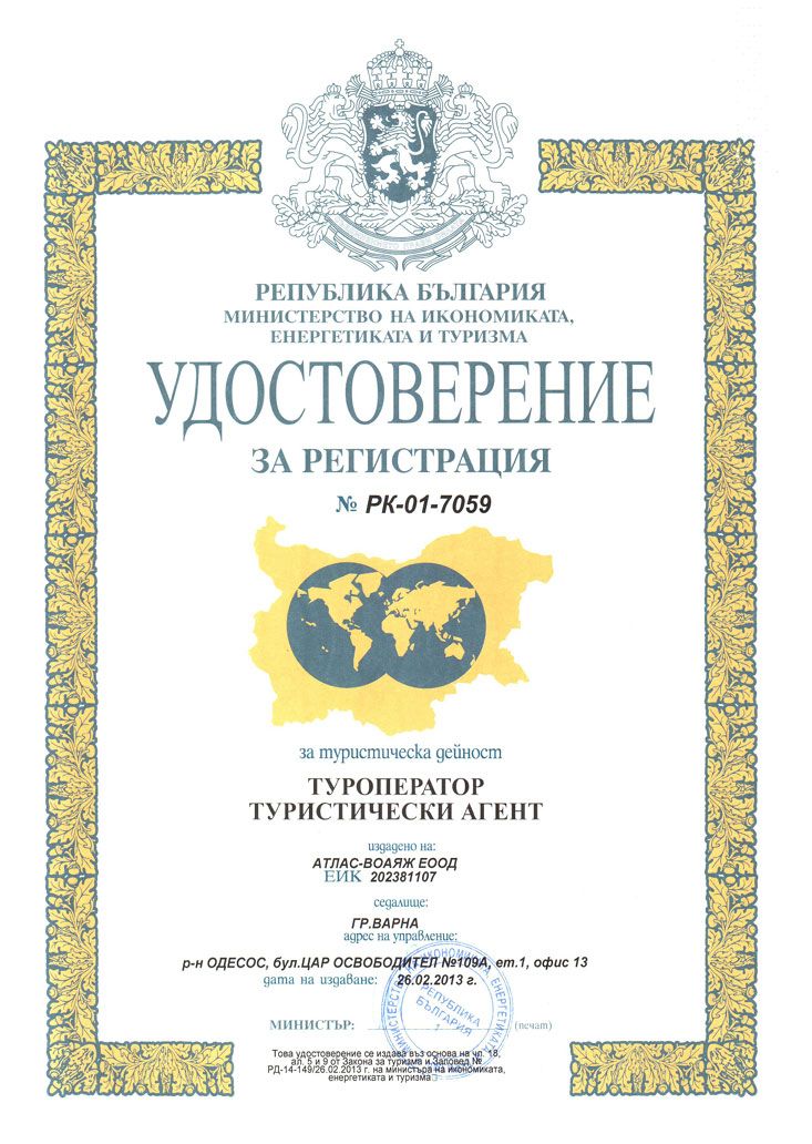 е пътническа агенция, притежаваща удостоверение за регистрация за Туроператор и туристически агент,№ РК -01-7059 издаден от Министерство на икономиката, енергетиката и туризма от дата 26.02.2013.