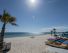 Собствен, пясъчен. Чадъри и шезлонги на плажа и басейна - безплатно, матраци - срещу заплащане. Плажни кърпи не се предлагат.